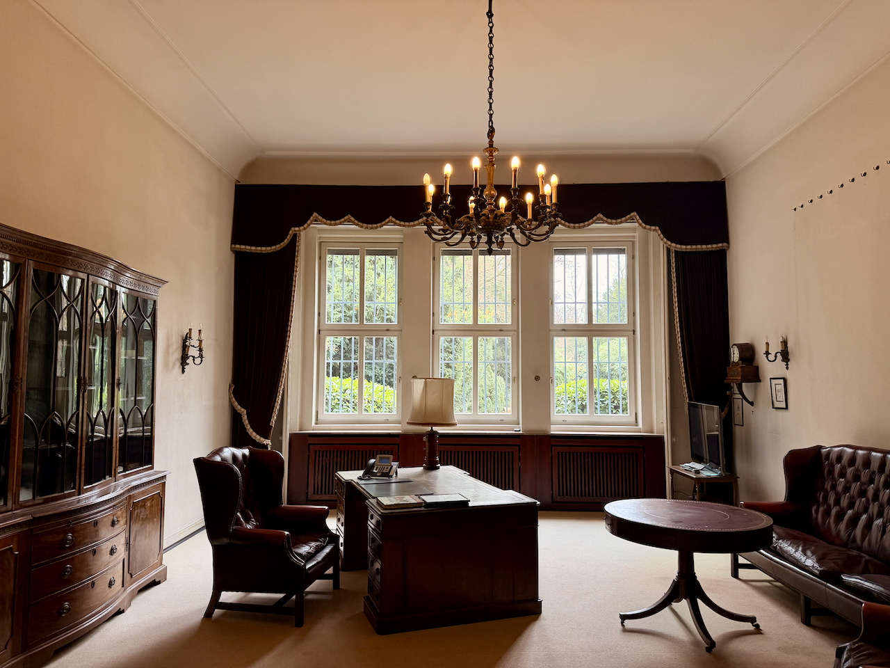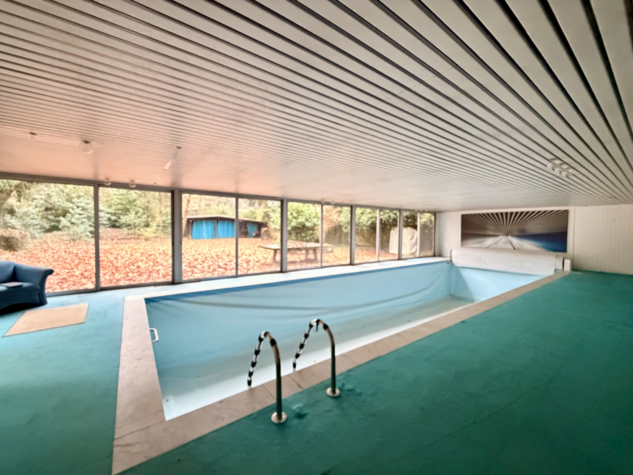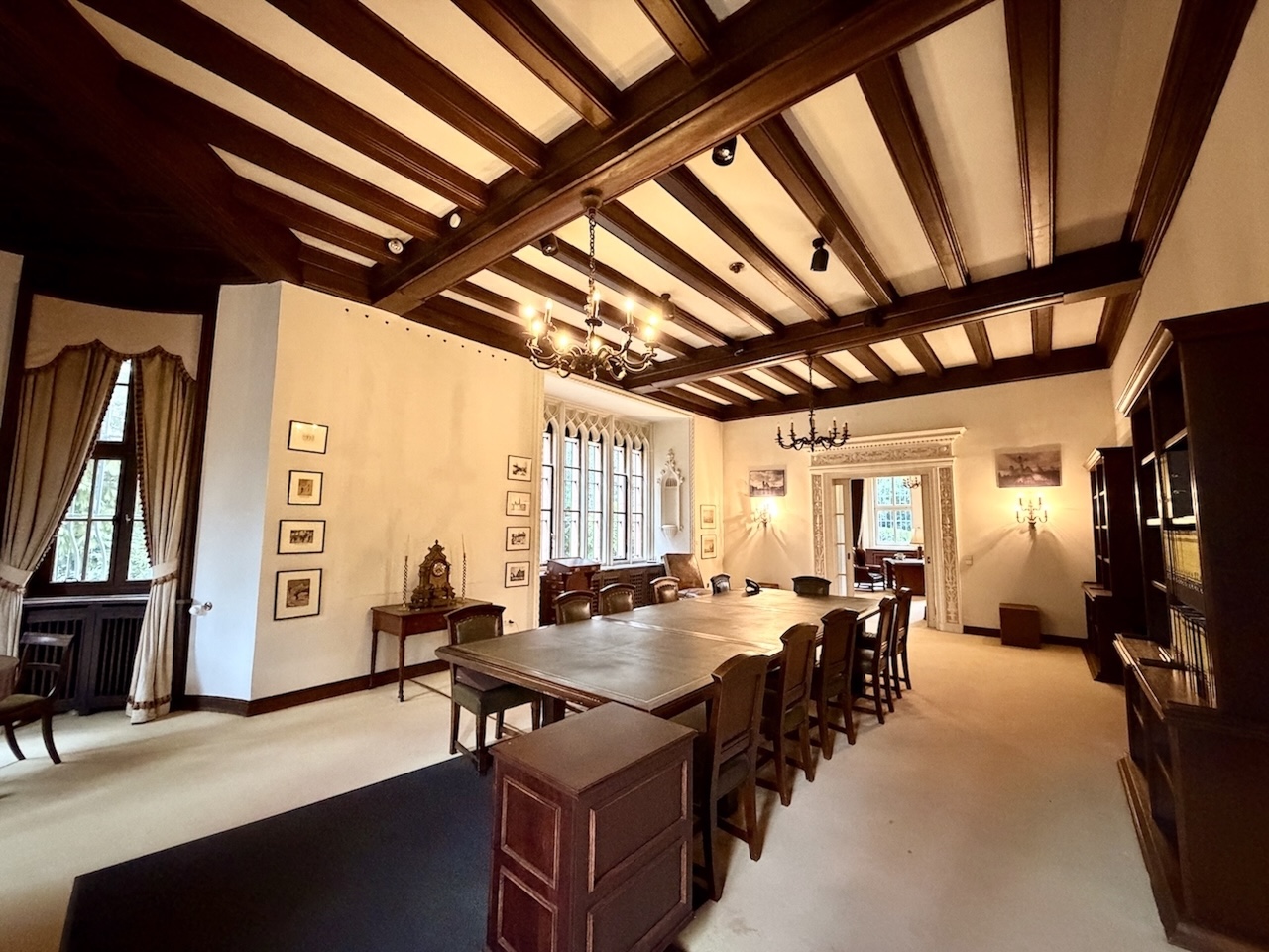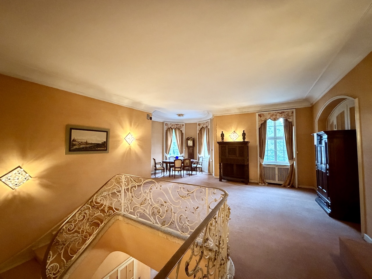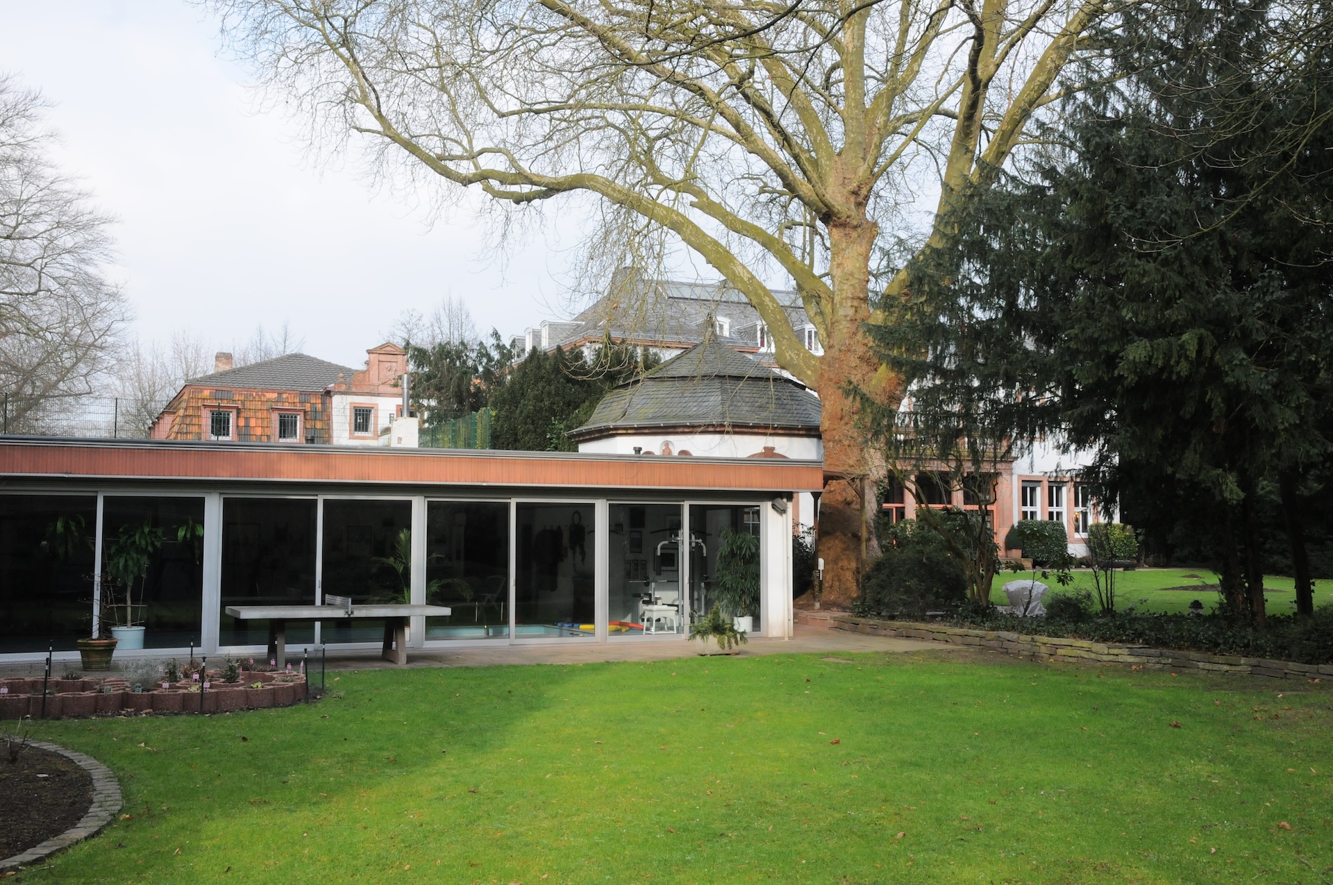 Neben dem weitläufigen Parkgelände bietet die Villa eine dezent integrierte Schwimmhalle mit Sauna, die als ergänzendes Motiv für Wellness-, Lifestyle- oder Interior-Aufnahmen genutzt werden kann, ohne den Fokus des Ensembles zu dominieren. Das zusätzliche Gebäude liefert saubere Linien und modernes Ambiente – ideal für Produktionen, die Premium-Lifestyle-Bildwelten benötigen. Den zentralen Charakter prägt jedoch eindeutig das Haupthaus: eine repräsentative Gründerzeitvilla in Köln mit eindrucksvoller Fassade, großzügigem Entrée und einer Raumarchitektur, die für Film- und Fotoproduktionen außergewöhnlich vielseitig ist. Die holzvertäfelten Salons, die fein ausgearbeiteten Stuckdecken, das weitläufige historische Treppenhaus und die harmonischen Proportionen der Räume ermöglichen klare, elegante Bilder mit hoher ästhetischer Tiefe. Unterschiedliche Raumstile – von klassischen Wohnbereichen über repräsentative Säle bis hin zu lichtdurchfluteten Übergangszonen – eröffnen zahlreiche Szenenvarianten, die sich ohne zusätzlichen Setbau wirkungsvoll inszenieren lassen.